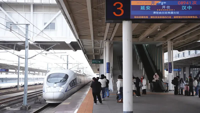 1月26日12時(shí)41分,漢中至延安首趟城際高鐵C8942次列車從漢中站準(zhǔn)點(diǎn)駛出,標(biāo)志著陜南陜北首次實(shí)現(xiàn)城際高鐵直達(dá)。