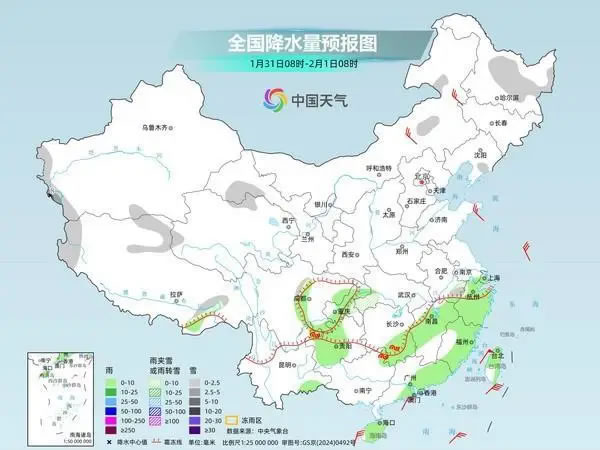 明天,我國大部地區(qū)將迎來降水間歇期,僅內(nèi)蒙古中部、新疆南疆西部山區(qū)、西藏西部和東北部、青海南部等地部分地區(qū)有小雪或雨夾雪,其中,西藏西部等地部分地區(qū)有中到大雪。西藏東南部、貴州中西部、云南東部、福建東南部、廣東東南部沿海、廣西西北部、海南島、臺灣島等地部分地區(qū)有小雨。