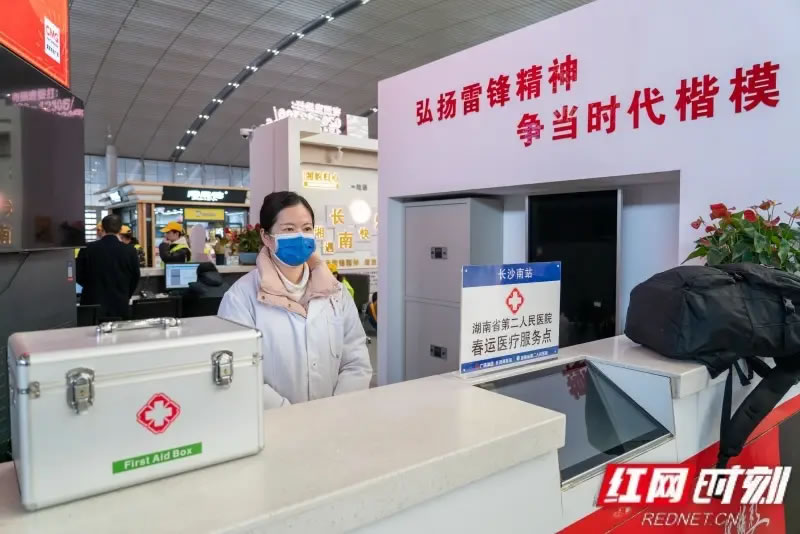 為保障春運(yùn)期間旅客健康出行,湖南多個(gè)車站升級(jí)了醫(yī)療服務(wù)措施。長(zhǎng)沙南站聯(lián)合湖南省第二人民醫(yī)院,在“湘遇長(zhǎng)南雷鋒服務(wù)站”設(shè)立了便民醫(yī)療點(diǎn),配有醫(yī)護(hù)人員駐守,提供免費(fèi)的健康咨詢、醫(yī)療救護(hù)以及基礎(chǔ)應(yīng)急藥品與設(shè)備。