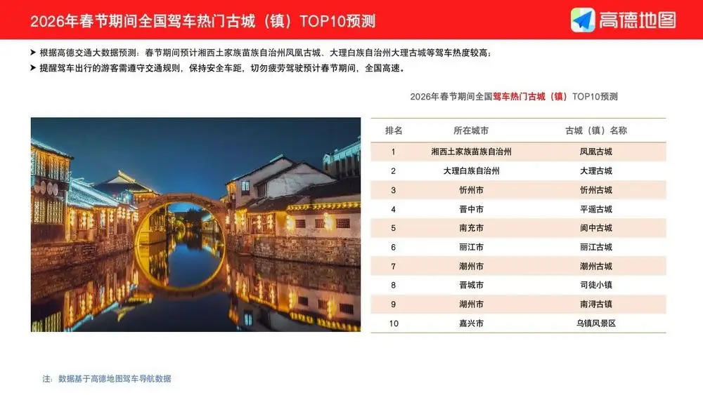 除了傳統(tǒng)的返鄉(xiāng)團(tuán)圓,今年的“旅行過年”也呈現(xiàn)出鮮明的主題化特征。報(bào)告預(yù)測(cè),廣州、重慶、成都、北京、杭州等將成為十大熱門自駕游城市,而在目的地選擇上,則呈現(xiàn)出三大熱門主題: