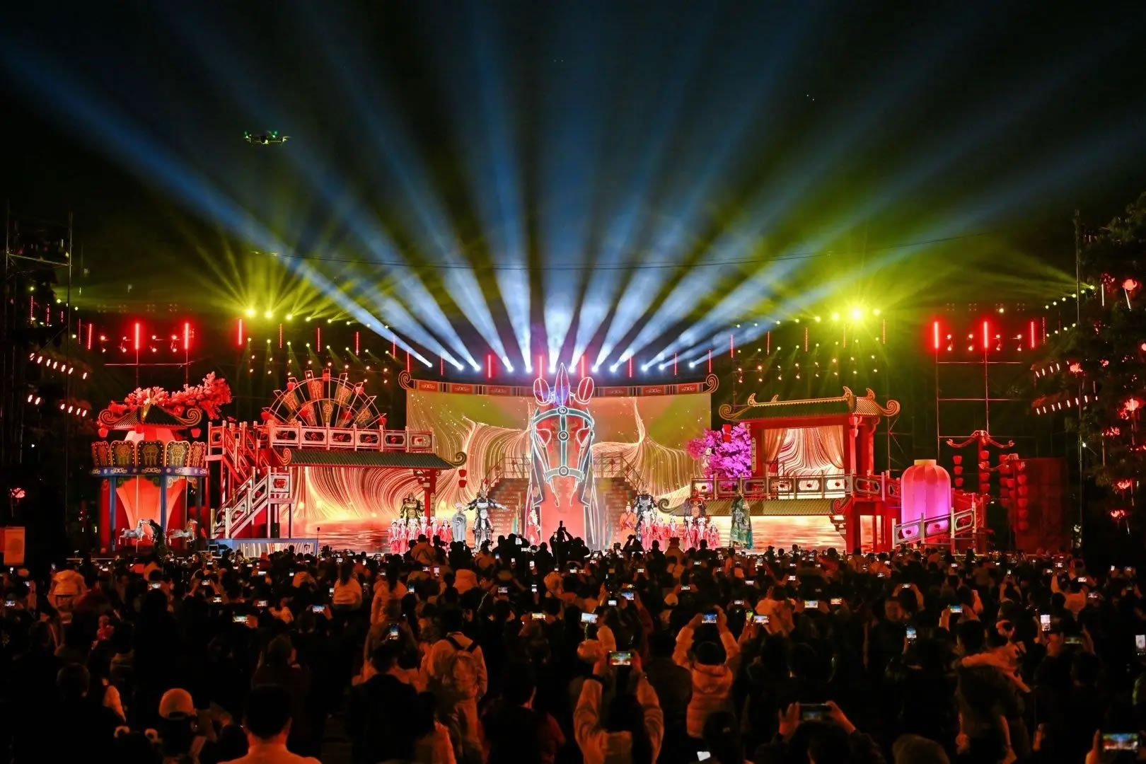 成都市圍繞“九天開出一成都·萬(wàn)戶千門入畫圖——到成都街頭走一走”核心主題,持續(xù)開展主題活動(dòng)130余場(chǎng)次,共同營(yíng)造活力滿滿、熱氣騰騰的新春喜慶氛圍。宜賓作為中央廣播電視總臺(tái)2026年春節(jié)聯(lián)歡晚會(huì)四大分會(huì)場(chǎng)之一,合江門廣場(chǎng)、501白酒文化圣地、李莊古鎮(zhèn)等重點(diǎn)景區(qū)景點(diǎn)亮相全國(guó)熒幕。達(dá)州市突出科技民俗盛宴點(diǎn)亮除夕夜,渠縣“科技盛景,廟會(huì)新元”國(guó)風(fēng)廟會(huì)盛大開幕,融合無(wú)人機(jī)光影秀、AI機(jī)器人互動(dòng)秀、直升機(jī)低空巡景與廟會(huì)馬戲團(tuán),打造沉浸式科技民俗體驗(yàn)。南充市閬中古城作為中國(guó)春節(jié)文化之鄉(xiāng),創(chuàng)新推出新春大廟會(huì)、五湖四海閬苑過(guò)大年、2026閬中春節(jié)聯(lián)歡會(huì)等特色文旅活動(dòng)。