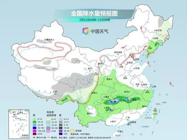 今明兩天,江南、華南和西南地區(qū)東部陰雨持續(xù),大部地區(qū)以小到中雨為主。后天起,南方將迎來一次大范圍降水過程,預計3月22日至26日,江漢、江淮、江南、西南地區(qū)東部以及廣西北部等地有中到大雨,局地暴雨,部分地區(qū)伴有雷電天氣。