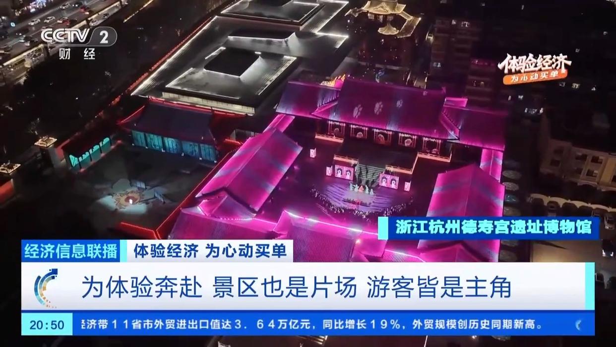 在浙江杭州,夜幕降臨之后,不少游客會奔赴一場名為《德壽夜宴》的奇妙約會。人們身處南宋皇家宮苑遺址,一眼千年。