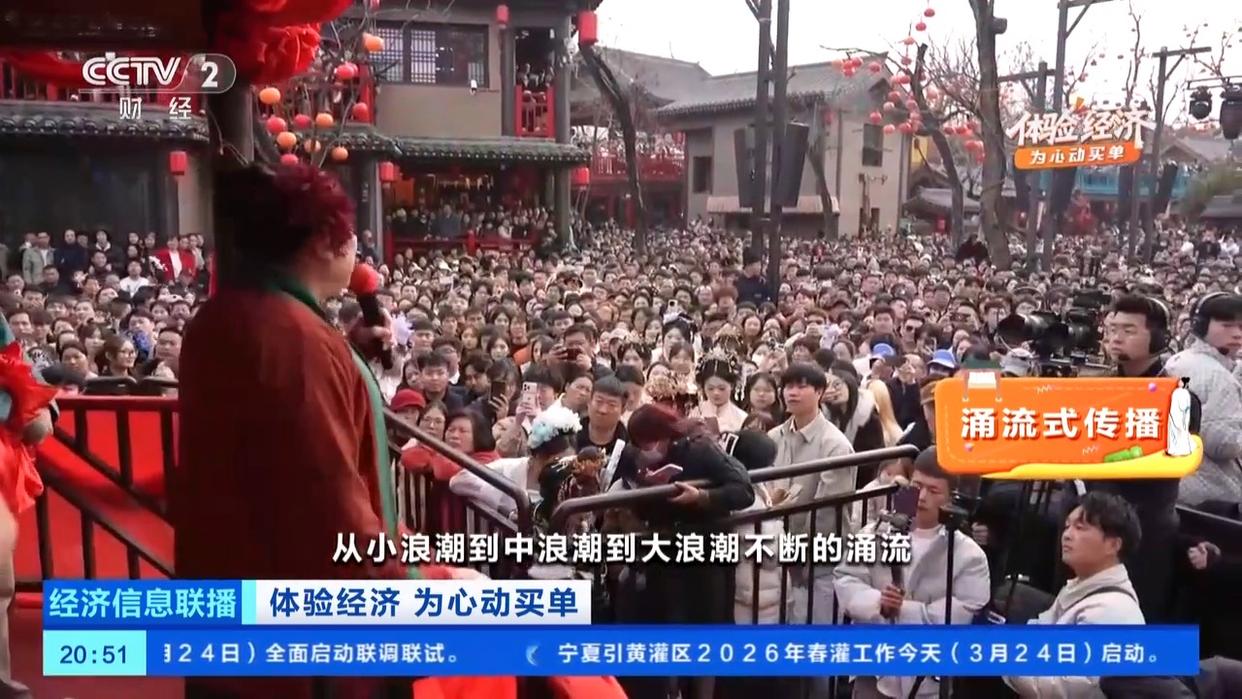 但流量來了,留多久也很關(guān)鍵。專家表示,體驗經(jīng)濟(jì)重在體驗,強(qiáng)在經(jīng)濟(jì)。景區(qū)在打造沉浸式互動場景的同時,還要整合拉動二次、多次消費(fèi)。城市范圍內(nèi),同樣需要打造文旅一張網(wǎng),網(wǎng)住、留住游客,創(chuàng)造更大的經(jīng)濟(jì)價值。