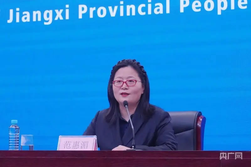 范惠湄介紹江西商旅文體健融合的相關(guān)情況(央廣網(wǎng)見(jiàn)習(xí)記者 葉昱汝 攝)