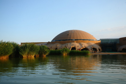 寧夏濕地博物館主要以葦、鳥、水、沙為設計元素,采用“沙丘”主造型,結合聲、光、電、像等科技技術,將濕地知識、濕地生物、濕地文化、濕地與人類的關系、科普科研、收藏展覽、演藝娛樂和旅游服務有機結合的展館。