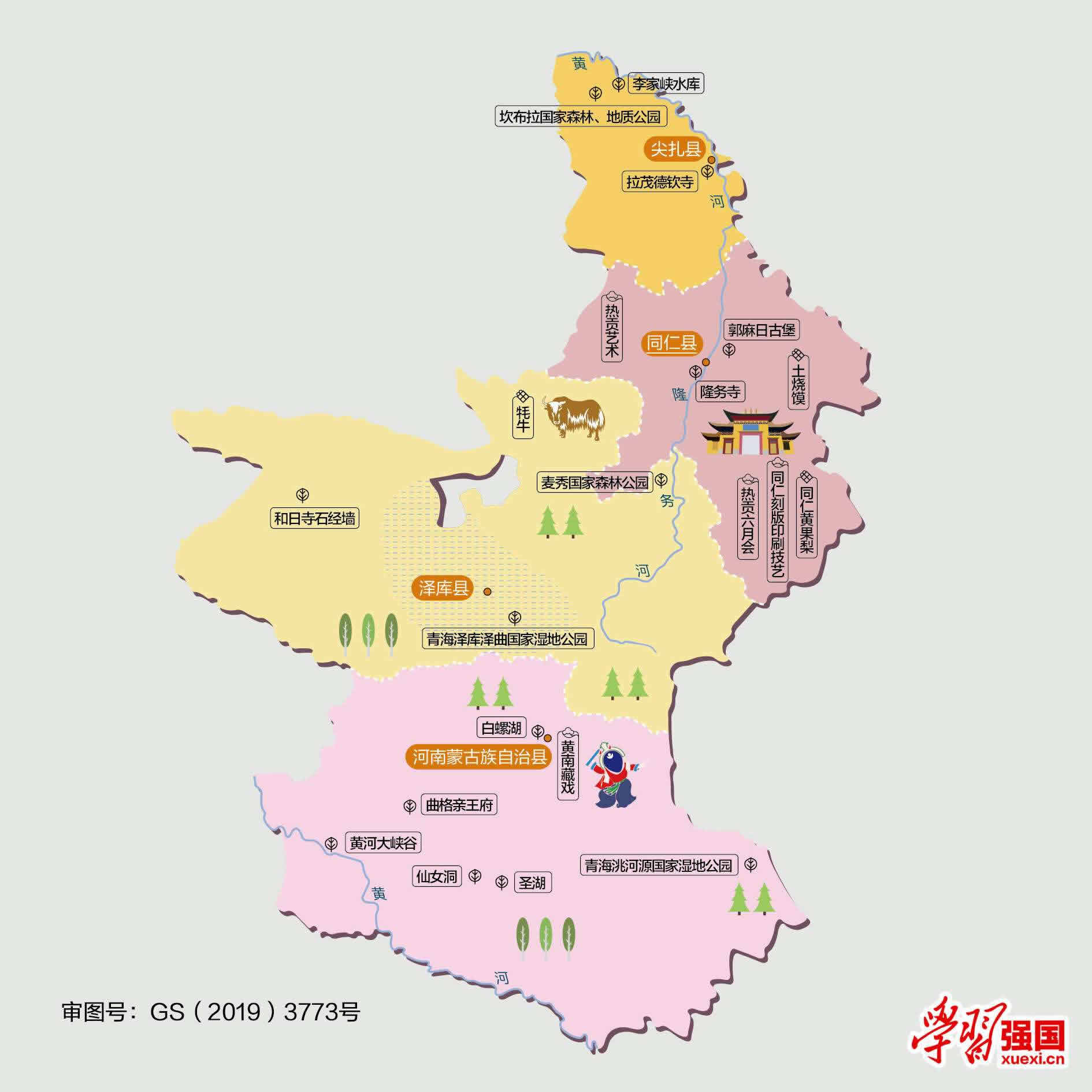 尖扎縣 面積1558平方千米,人口62246,政府駐馬克唐鎮(zhèn),下轄3個鎮(zhèn)、6個鄉(xiāng)