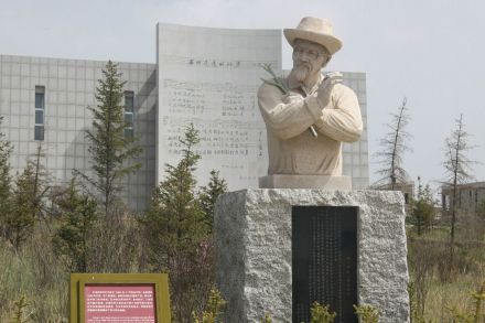 退役了,豐碑立在純凈的草原深處。當(dāng)你從西寧向北驅(qū)車100公里,進入當(dāng)年的軍事神秘禁區(qū)金銀灘草原時,第一簾映入視野的,便是“兩彈”研制成功的大型花崗巖紀念碑。整個碑高16.15米,象征著1964年10月16日15時成功爆炸第一顆原子彈,碑端為不銹鋼圓球,昭示著中國人民終于圓了原子彈和氫彈合二為一的夢。碑文鐫刻著該基地在研制“兩彈”中所走過的艱難歷程和中國的核立場,總共600個字。紀念碑左右兩邊分別是原子彈和氫彈爆炸時的煙云浮雕,以及爆炸成功的時間,正面為張愛萍將軍題寫的碑名“中國第一個核武器研制基地”。