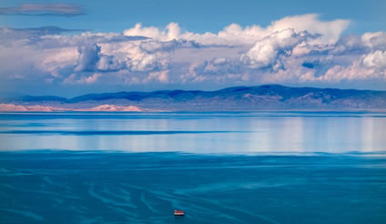 青海省青海湖景區(qū),位于青藏高原的東北部、西寧市西北部、剛察縣南部,距西寧市136公里。青海湖古稱“西!,又稱“仙!、“鮮水!、“卑禾羌!,是中國最大的內(nèi)陸湖、最大的咸水湖。湖面海拔3196米,湖岸線長360公里,面積4583平方公里,湖水冰冷且鹽份很高。湖中有海心山,四周高山環(huán)繞:北面是大通山,東面為日月山,南面是青海南山,西面為橡皮山。湖區(qū)盛夏時(shí)節(jié)平均氣溫僅15℃,為天然避暑勝地。