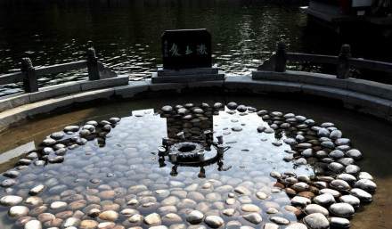 位于百脈泉公園清照?qǐng)@內(nèi),泉池圓形,直徑3米,深0.5米,形若圓盤,泉中池底鋪鵝卵石,泉噴水花色白如玉,噴高可達(dá)數(shù)尺,水落池中如玉石片片,碧水洗白玉,浩純無(wú)暇故名白玉泉(漱玉泉),更與墨泉遙相呼應(yīng),一黑一白,一暗一明,共匯繡江。給李清照故里增添了一幅秀麗的畫卷。仰首西望,易安樓琴聲陣陣,海棠軒茗香輕飄,黃花館書畫琳瑯,金石苑古色古香。泉水風(fēng)貌,文化品味融為一體,給清照?qǐng)@增添了耀眼的光彩。