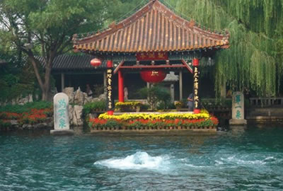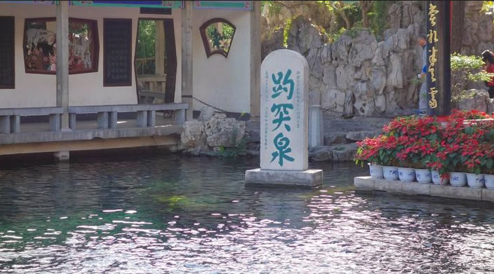 趵突泉又叫檻泉,是濼水的源頭,如今已有二千七百年的歷史!磅劳蝗卟l(fā),聲如隱雷”,“泉源上奮,水涌若輪”。泉水一年四季恒定在攝氏18度左右,嚴(yán)冬,水面上水氣裊裊,薄霧冥冥,一邊泉池波光粼粼,一邊是亭臺樓閣,金壁煌煌,構(gòu)成了一幅奇妙的人間仙境。歷代著名文學(xué)家、哲學(xué)家、詩人諸如曾鞏、蘇軾、張養(yǎng)浩、王守仁、蒲松齡等都有吟泉都忍不住在此留下美文以志之。