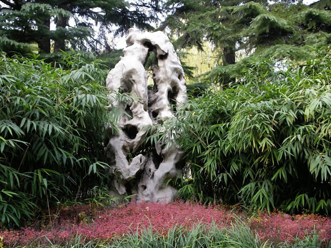 趵突泉原來還有一座麟石,“七七事變”時被日本帝國主義的飛機(jī)炸毀。四座靈石僅存的只有這一龜石。它是一座玲瓏剔透、栩栩如生的太湖石,高近4米,重約8噸。該石挺拔露骨,多空竅,筋絡(luò)明顯,多凹凸,具有太湖石品中的“皺、瘦、透、漏”的特點(diǎn)。