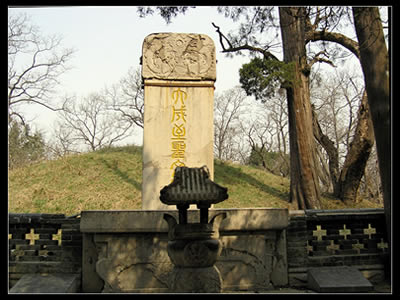 桃花扇》作者孔尚任的墓碑。由此向西,有一座上書 “鸞音褒德”的墓群,孔子的后裔孔謙、孔宙孔彪、孔褒等均埋葬于此。自漢墓群西行還有明墓群,那里墓冢點點,碑碣累累,石獸成群,明代名書法家李東陽、嚴(yán)嵩等所書寫的碑石立于其間。