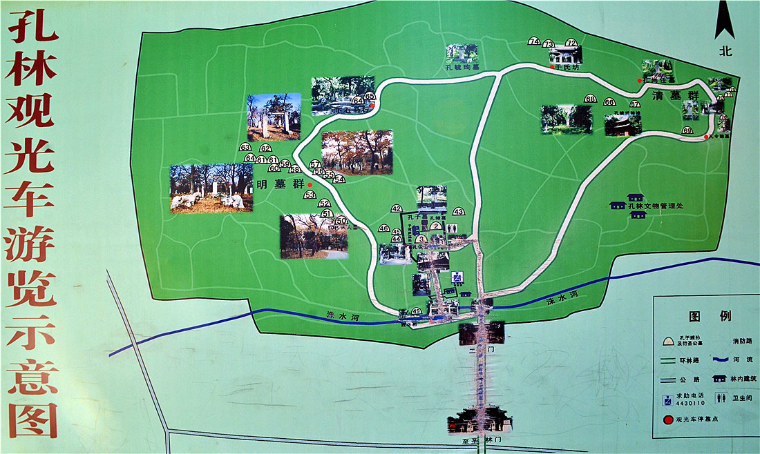 乾隆時又予擴大?鬃幽箹|為其子孔鯉墓,南為其孫孔伋墓,這種墓葬布局名為攜子抱孫。