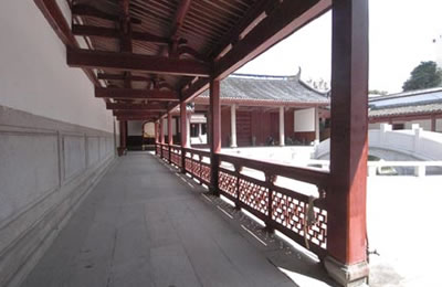 大成殿東西兩側(cè)的房子叫“兩廡”,是后世供奉先賢 先儒的地方這配享的賢儒大都是后世儒家學(xué)派中著名的人物,如董仲舒、韓愈、王陽(yáng)明等。在唐朝僅有20余人,經(jīng)過(guò)歷代增添更換,到民國(guó)時(shí),多達(dá)156人。這些配享的人原為畫(huà)像,金代改為塑像,明成化年間一律改為寫(xiě)有名字的木制牌位,供奉在一座座的神龕中,F(xiàn)在兩廡中陳列著歷代石刻。