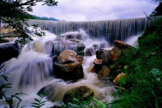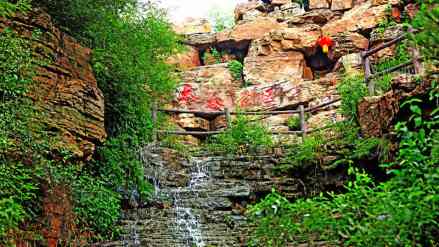 云瀑洞天景區(qū)依山傍水,山間巨石林立,其間最著名的便是那塊一指可動的百噸奇石了,它長7米,寬5米,重達百噸,而如此龐然大物,卻可憑游人一指之力,上下顫動。面對如此奇觀,攝影家們也紛紛走上前去,感受百噸巨石在自己的手指下微微顫動的奇妙感覺。指動石還有另一奇特之處,那便是在它的底部有一幅中國地圖,大西北、東三省、寶島臺灣都歷歷在目,于是指動石便有了另一個豪邁的名字——“指點江山”。