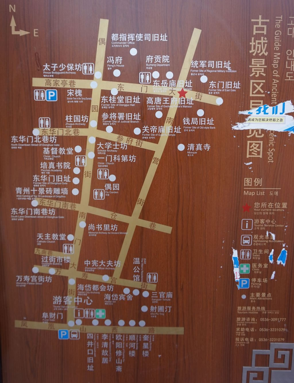 有北門大街、東門大街、偶園街、北營街、南營街、昭德街等10000多米明清古街道,有青州博物館、三賢祠、李清照紀念館、萬年橋、宋城、偶園、衡王府牌坊、青州府貢院、府衙門、府文廟、真教寺、清真寺、基督教堂、天主教堂、培真書院、南門、魁星樓、歐陽修山齋、李清故居等120多處景點,還有上百處老字號等,較為全面地展示了古青州傳統(tǒng)的市井風情和社會習俗。