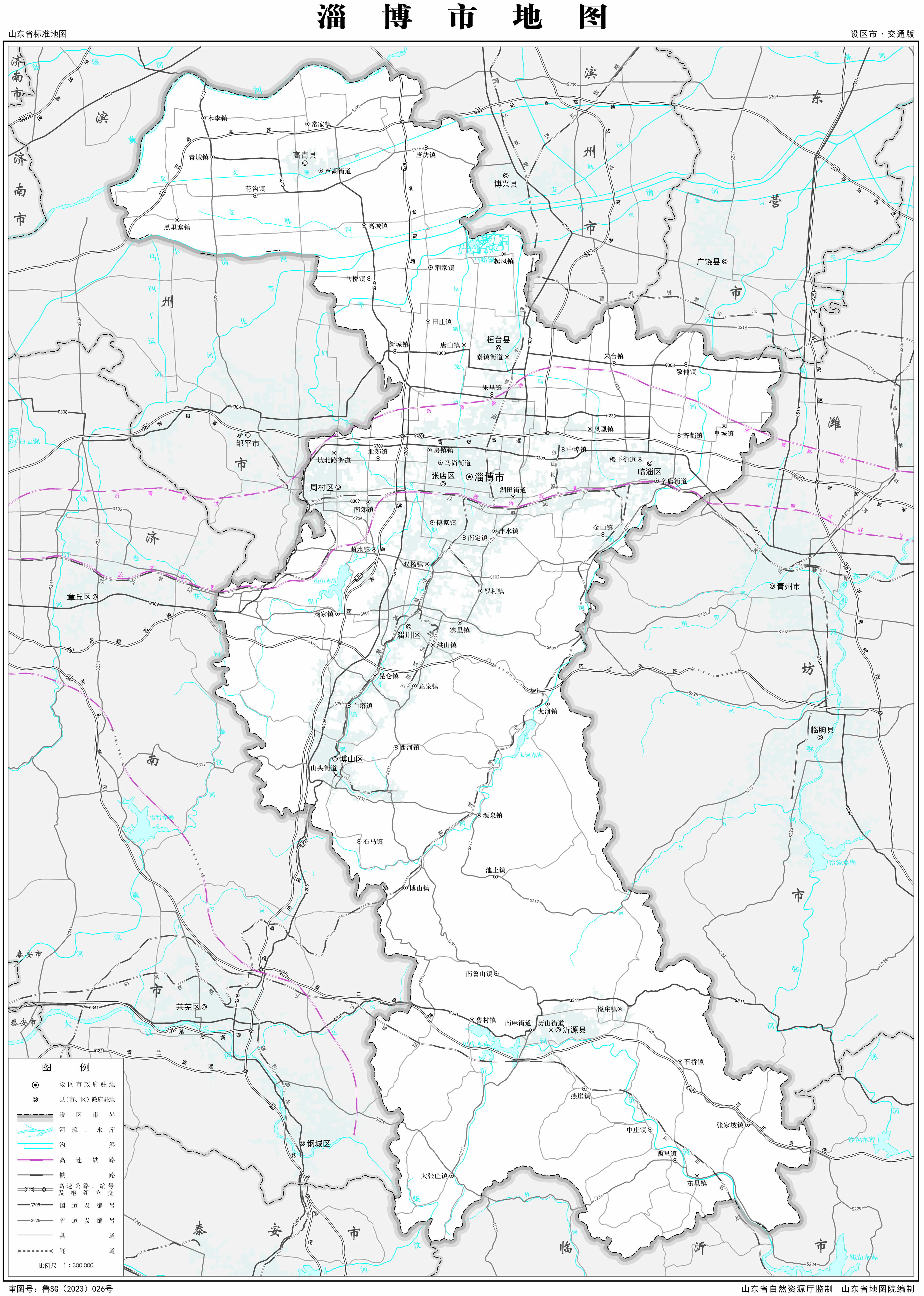 淄博市轄5個市轄區(qū)、3個縣: