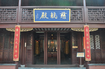 慈航殿內(nèi)供奉眼母娘娘(主治眼疾)、慈航大士(主平安)、天后娘娘(主出海平安)。慈航殿門上懸有對聯(lián)“善惡到頭總有報,舉頭三尺有神明”,匾額“慈航普渡”。 月老殿