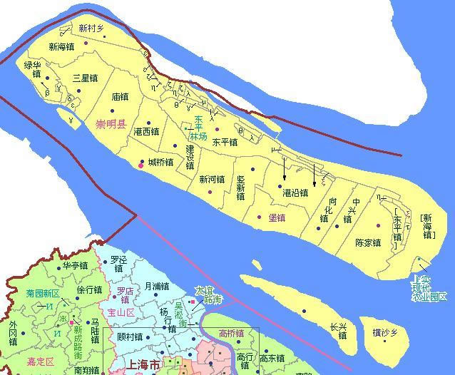 崇明區(qū)轄16個(gè)鎮(zhèn)、2個(gè)鄉(xiāng):