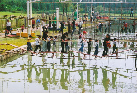 趣橋包含18座風(fēng)格各異的“運(yùn)動(dòng)橋”,有波浪橋、秋千橋、梅花橋等。
