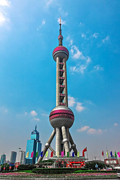 東方明珠廣播電視塔,簡稱“東方明珠”,位于上海市浦東新區(qū)陸家嘴世紀(jì)大道1號,地處黃浦江畔,背擁陸家嘴地區(qū)現(xiàn)代化建筑樓群,與隔江的外灘萬國建筑博覽群交相輝映,1991年7月30日動工建造,1994年10月1日建成投入使用,是集都市觀光、時尚餐飲、購物娛樂、歷史陳列、浦江游覽、會展演出、廣播電視發(fā)射等多功能于一體的上海市標(biāo)志性建筑之一。截至2019年,為亞洲第六高塔、世界第九高塔。
