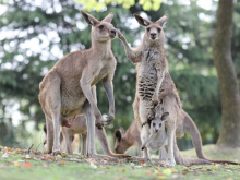 袋鼠是澳大利亞的國(guó)獸,有著獨(dú)特的育兒方式,袋鼠習(xí)慣用后肢跳躍前進(jìn),時(shí)速可達(dá)60公里。袋鼠坡草坪上的灰大袋鼠、赤大袋鼠組群生活,它們性格溫順。