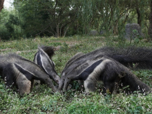 大食蟻獸展區(qū)位于鱷魚(yú)島的北面緊鄰飛熊山莊,大食蟻獸是生活在南美洲的一種奇特動(dòng)物,它們的長(zhǎng)相非常獨(dú)特,有著尖尖的腦袋和一把“大掃帚”尾巴。大食蟻獸室內(nèi)展廳設(shè)計(jì)有地暖和空調(diào),一到冬天就會(huì)開(kāi)啟,將室內(nèi)溫度維持在15攝氏度左右,為保證空氣流通,白天亦會(huì)開(kāi)窗通風(fēng)。其次,在大食蟻獸睡覺(jué)區(qū)域鋪墊了木板,能減少熱量流失,它們很喜歡在木板上盤成圈睡覺(jué)。冬天的時(shí)候,大食蟻獸的食物會(huì)提前預(yù)熱下,例如牛奶提前泡暖,酸奶放置到常溫再使用。