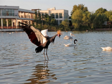 鶴類濕地沿天鵝湖而建,四面環(huán)水,有著仿自然的生態(tài)環(huán)境。這里有丹頂鶴、白枕鶴、白鸛、蓑羽鶴、灰鶴、冠鶴等。每日黃昏時(shí)間,群鶴共舞共鳴,鶴類濕地每天都會(huì)有動(dòng)物科普講解以及動(dòng)物喂食互動(dòng)節(jié)目。
