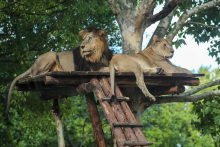 非洲獅區(qū)是車入?yún)^(qū)的一部分。非洲獅是現(xiàn)存平均體重最大的貓科動(dòng)物,雄獅有鬃毛,而雌獅沒(méi)有。獅群中,雌獅負(fù)責(zé)捕獵,雄獅負(fù)責(zé)巡視領(lǐng)地和與外來(lái)雄獅進(jìn)行戰(zhàn)斗。非洲獅區(qū)行為展示時(shí)間為:周一至周五:12:00、13:00、14:00;雙休及節(jié)假日:11:00、12:00、13:00、14:00。