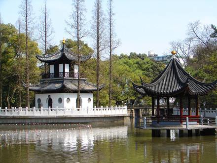 是一座具有獨(dú)特風(fēng)格的明代園林,由明代龔氏園、沈氏園、金氏園和城隍廟合并而成,為上海五大古典園林之一。秋霞圃以清水池塘為中心,石山環(huán)繞,古木參天,造園藝術(shù)獨(dú)特,分桃花潭、凝霞閣、清鏡堂、邑廟等四個景區(qū)。桃花潭景區(qū)的池上草堂,有“一堂靜對移時久,勝似西湖十里長”的贊譽(yù)。凝霞閣景區(qū)的“環(huán)翠軒”軒西有復(fù)廊式“碑廊”,上集明清碑刻17方。從西門入園,院內(nèi)森桂軒的四周遍植桂樹;軒南置明代遺物“三星石”,分別取名“福、祿、壽”;園內(nèi)還有一“涉趣橋”,建于民國十年(1921年),連接曲徑北岸,橫跨幽泉清溪。