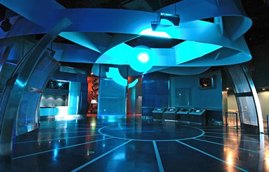 太空影院是中國第一家采用視頻拼接、圖像處理、觀眾互動、電腦集成等技術綜合而成的多媒體球幕影院。Digistar3系統(tǒng)共有6臺視頻投影儀,照明功率達到了4800瓦。它們在計算機的控制下,在直徑13米的球形銀幕透射出6幅銜接的影像,組成一幅完整的全球幕影象。整個影院有69個座位,座位的傾斜度達到了23度,觀眾幾乎是躺著看電影的。最新奇的是每個座位的扶手上有一個控制按鈕,觀眾可以按此按鈕控制電影劇情的發(fā)展,達到了“畫隨人動,人隨畫思”的境界。