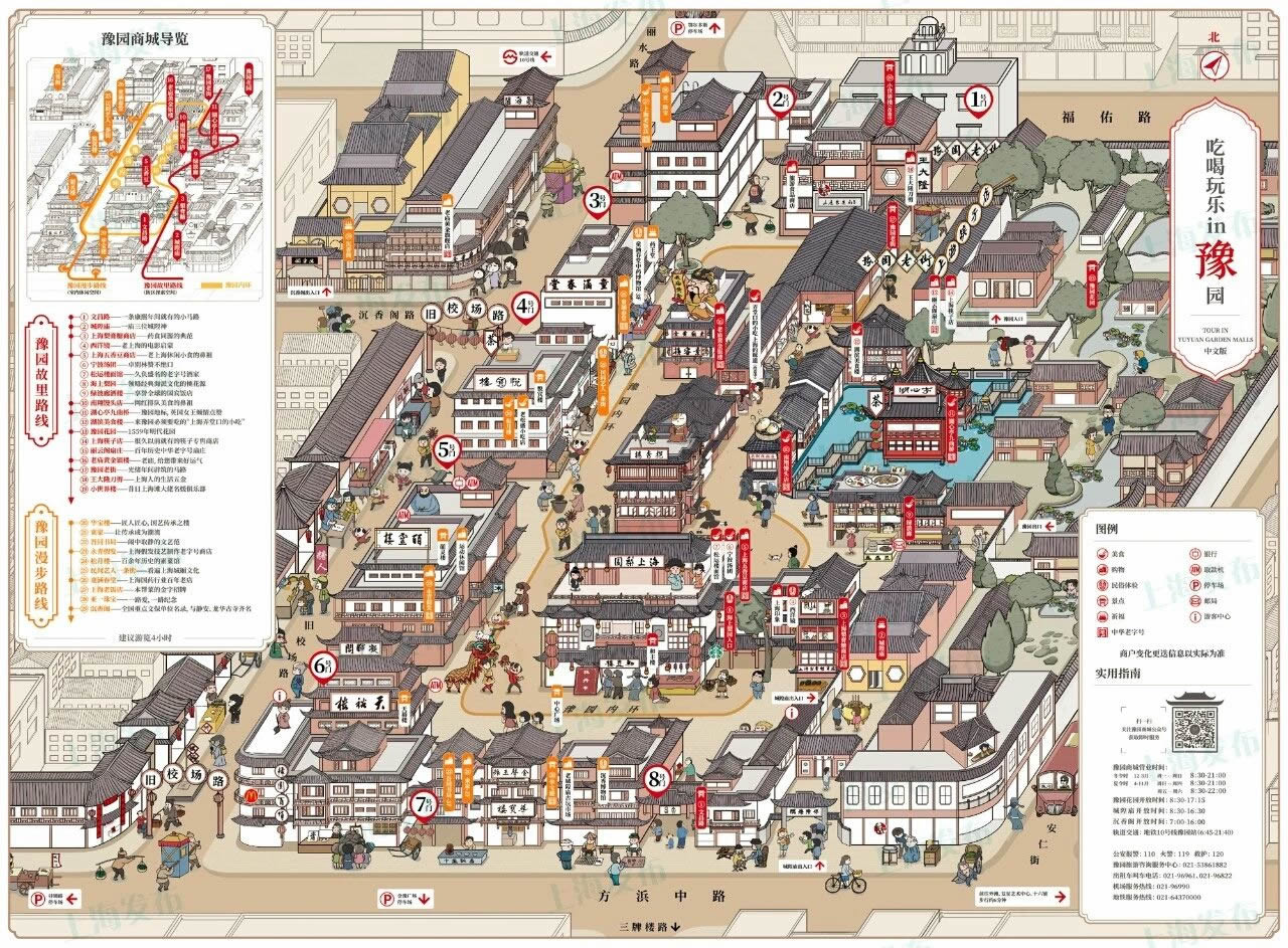 豫園位于上海市老城廂的東北部,北靠福佑路,東臨安仁街,西南與上海老城隍廟毗鄰,是江南古典園林,始建于明代嘉靖、萬(wàn)歷年間,占地三十余畝。園內(nèi)有江南三大名石之稱的玉玲瓏、1853年小刀會(huì)起義的指揮所點(diǎn)春堂,園側(cè)有城隍廟及商店街等游客景點(diǎn)。