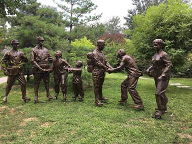 勝利大道全面反映抗戰(zhàn)時(shí)期八路軍戰(zhàn)士英勇抗敵,與日軍斗智斗勇,最終取得勝利的畫(huà)面。畫(huà)面包括:地道戰(zhàn)、地雷戰(zhàn)、小兵張嘎、雞毛信、鐵道游擊隊(duì)、雁翎隊(duì)、狼牙山五壯士、白求恩、聶耳(義勇軍進(jìn)行曲)、黨的兒女、歡慶勝利、支援前線、雙槍李向陽(yáng)、百團(tuán)大戰(zhàn)、送子參軍、消息樹(shù)、紅燈記等21 組雕塑。