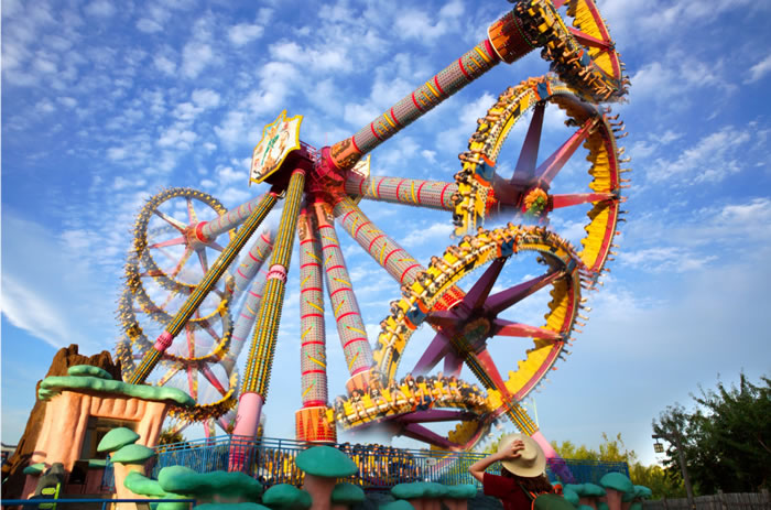 在優(yōu)美、輕快的旋律中,碩大的轉(zhuǎn)盤和轉(zhuǎn)臺(tái)錯(cuò)向旋轉(zhuǎn)、搖擺,隨著轉(zhuǎn)盤的搖擺,塔身徐徐上升。此時(shí),穩(wěn)坐飛椅的游客在離心力的作用下,上下飛旋,時(shí)而像在藍(lán)天翱翔,時(shí)而像在海上沖浪,能感受到騰云駕霧的快感。想體驗(yàn)兒時(shí)蕩秋千的感覺(jué)嗎,想體驗(yàn)在空中展翅飛翔的暢快嗎,那就來(lái)到高空飛翔盡情的放聲尖叫吧……