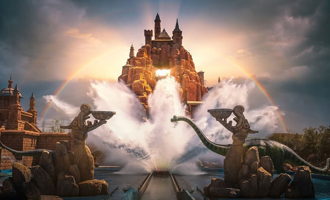 逃出恐龍島是以吳哥窟為主要建筑風(fēng)格的大型室內(nèi)漂流歷險(xiǎn)主題項(xiàng)目,游客將乘坐小車進(jìn)入危險(xiǎn)的侏羅紀(jì)時(shí)代,在茂密的叢林里展開(kāi)一場(chǎng)驚心動(dòng)魄的冒險(xiǎn)。巨型恐龍的隆隆腳步震動(dòng)著大地、頭頂上盤旋著空中獵手、巨石突然從眼前滾落,緊張和恐怖彌漫四周。隨后游船從幾十米高的懸崖瀑布上急速下墜,讓游客在驚叫聲中經(jīng)歷一場(chǎng)永生難忘的恐龍島冒險(xiǎn)之旅。