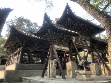 中,即中軸線,從大門入,自水鏡臺起,經(jīng)會仙橋、金人臺、對越坊、獻(xiàn)殿、鐘鼓樓、魚沼飛梁到圣母殿。這是晉祠的主體,建筑結(jié)構(gòu)嚴(yán)謹(jǐn)。
