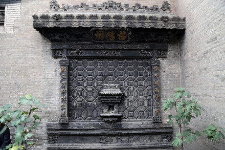 喬家大院大門坐西向東,為拱形門洞,上有高大的頂樓,頂樓正中懸掛著山西巡撫受慈禧太后面喻而贈(zèng)送的匾額,上書“福種瑯環(huán)”四個(gè)大字。黑漆大門扇上裝有一對(duì)椒圖獸街大銅環(huán),并鑲嵌著銅底板對(duì)聯(lián)一付:“子孫賢,族將大;兄弟睦,家之肥。”字里行間透露著喬在中堂主人的希望和追求,也許正是遵循這樣的治家之道,喬在中堂經(jīng)過連續(xù)幾代人的努力,達(dá)到了后來人丁興旺、家資萬貫的輝煌。大門頂端正中嵌青石一塊,上書“古風(fēng)”。大門對(duì)面的掩壁上,刻有磚雕“百壽圖”,一字一個(gè)樣,字字有風(fēng)采。百壽圖為“在中堂”主人喬致庸的孫婿、近代著名學(xué)者、篆書家常贊春書寫。掩壁兩旁是清朝大臣左宗棠題贈(zèng)的一付意味深長(zhǎng)的篆體楹聯(lián):“損人欲以復(fù)天理,蓄道德而能文章。”楹額是“履和”。甬道的西盡頭處是雕龍畫棟的喬氏祠堂,與大門遙相對(duì)應(yīng)。祠堂裝點(diǎn)得十分講究,三級(jí)臺(tái)階,廟宇結(jié)構(gòu),以獅子頭柱,漢白玉石雕,壽字扶欄,通天欞門木雕夾扇。出檐以四條柱子承頂,柱頭有玉樹交榮、蘭馨桂馥、藤羅繞松的鏤空木雕。額頭有匾,上書“仁周義溥”四字,李鴻章所題。祠堂里原陳列著木刻精雕的三層祖先牌位。