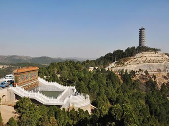 剁手和尚墓塔位于烏金山磚窯地,即水晶院西崖上,游園東側(cè),F(xiàn)重修墓塔,并塑剁手和尚漢白玉塑像,以示特別紀(jì)念。