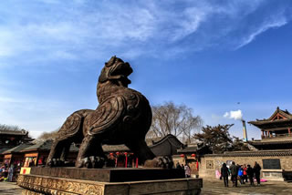城隍廟是國務院重點文物保護單位,也是國內(nèi)保存最完整的城隍廟之一。占地面積6000平方米,始建于元至正二十二年(公元1362年),廟內(nèi)主殿建筑結(jié)構(gòu)精巧細致。主殿前 有玄鑒一座,高達25米,頗為壯觀,1999年世界歷史文化遺址保護基金會公布為全球最精美的古建筑之一,城隍廟是古代宗教文化中普遍崇祀的重要神之一,是護城佑民、主掌茗 籍之神。是古代“人神共治”思想的明確反映 。城隍廟前,有兩尊貔貅(pi xiu)威武地橫在門前的廣場上。這種據(jù)說只有嘴沒有屁眼的獸喻意“只進不出”,是發(fā)財?shù)娜皤F。在陽光下.鑄鐵的貔貅昂首挺胸,威風凜凜,像一對忠誠的衛(wèi)士,日夜鎮(zhèn)守在古城。