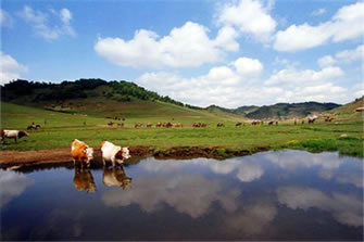 草原景觀――草原景觀最為獨特,集中于谷底山坡,連片分布,質優(yōu)量大,氣勢恢弘,在曖溫帶山地少見,在東部季風區(qū)罕見,驅馬奔馳,草地漫步,席地小憩,妙不可言。