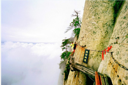 華山的著名景區(qū)多達210余處,有凌空架設的長空棧道,三面臨空的鷂子翻身,以及在峭壁絕崖上鑿出的千尺幢、百尺峽、老君犁溝等,其中華岳仙掌被列為關中八景之首。