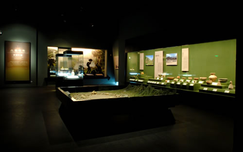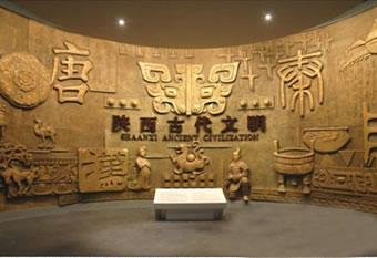 陜西歷史博物館基本陳列《陜西古代文明》,于2008年3月正式開放,以歷史進程為線索,選取各時代的典型文物進行組合陳列,來揭示陜西地區(qū)古代社會文明發(fā)展狀況。該陳列展廳面積4600平方米,共三個展室,分為七個部分(史前、周、秦、漢、魏晉南北朝、隋唐、宋元明清),精選的2000余件珍貴文物包括:反映古代先民生活情景和藝術(shù)追求的豐富多姿的彩陶器皿,反映周人興起與鼎盛的青銅器,反映秦掃六合統(tǒng)一天下氣勢的青銅劍、經(jīng)機、兵馬等,以及顯示秦漢奮發(fā)崛起精神的鋼建筑構(gòu)件、大型瓦當,還有反映封建盛世繁榮景象的精美的唐代金銀器和唐三彩等,并配以遺址模型、圖表、照片等輔助展品。系統(tǒng)地展現(xiàn)了自115萬年前至1840年陜西地區(qū)的古代歷史。由于中國古代社會周、秦、漢、隋、唐幾個盛期都是在陜西地區(qū)建都,所以該陳列以這幾個時期為重點,既突出反映了陜西地區(qū)古代燦爛的文化,也反映了這幾個時期中國社會經(jīng)濟文化發(fā)展的最高水平。