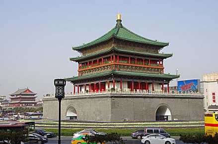 鐘鼓樓為鐘樓和鼓樓的合稱,均為中國古代的報(bào)時(shí)建筑。鐘樓是一座重檐三滴水式四角攢尖頂?shù)拈w樓式建筑,鼓樓為古代城市中設(shè)置大鼓的樓。用以擊鼓報(bào)警,或按時(shí)敲鼓報(bào)告時(shí)辰。鐘鼓樓合理的建筑結(jié)構(gòu)、華麗的建筑色彩、典雅的裝飾構(gòu)件,都具有濃郁、鮮明的民族文化特色,是西安標(biāo)志性建筑物,先后接待了周恩來、朱德等國家領(lǐng)導(dǎo)人和眾多中外著名人士。