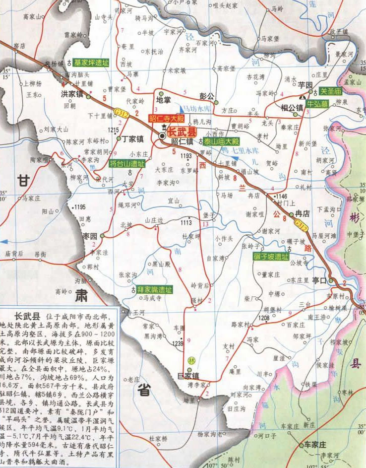 長武縣轄5個(gè)鎮(zhèn)、6個(gè)鄉(xiāng):
