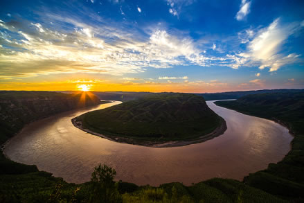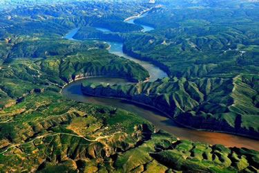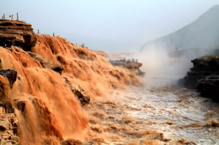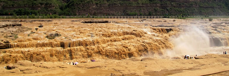 黃河在延安市延川縣眼岔寺鄉(xiāng)馬家騫村入?yún)^(qū)境,自北而南沿東界流經(jīng)延長縣安河、羅子山、南河溝,在宜川縣猴兒川口出境,長183千米。在宜川縣城東48千米處,黃河由200—300米寬收縮到50米,突然跌入34米深的壺形峽谷,形似巨壺沸騰,十分壯觀,稱之為宜川壺口瀑布。