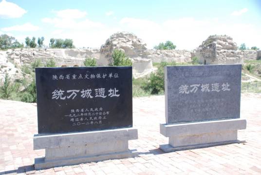 統(tǒng)萬(wàn)城,因其城墻為白色,當(dāng)?shù)厝朔Q白城子。又因系赫連勃勃所建,故又稱為赫連城。為東晉時(shí)南匈奴貴族赫連勃勃建立的大夏國(guó)都城遺址,也是匈奴族在人類歷史長(zhǎng)河中留下的一座都城遺址,是中國(guó)北方最早、最著名的都城,已有近1600年歷史。統(tǒng)萬(wàn)城始建于公元413年,竣工于公元418年,由漢奢延城改筑而成。后來(lái)在北魏太武皇帝拓跋燾一統(tǒng)北方期間,統(tǒng)萬(wàn)城被攻克,從此設(shè)置為統(tǒng)萬(wàn)軍鎮(zhèn)。