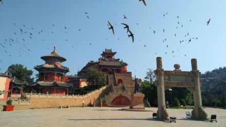 位于米脂縣北的盤龍山上,盤龍山原名馬鞍山,是省級(jí)重點(diǎn)文物保護(hù)單位。李自成行宮是李自成在西安建立大順國(guó)后,其侄李過(guò)奉命回米脂修建的。行宮依山據(jù)險(xiǎn),前后2層90級(jí)臺(tái)階,將秀麗別致的樂樓、梅花亭、捧圣樓、二天門以及凌空而立的玉皇閣聯(lián)結(jié)托起,蜿蜒有序地直上山巔。