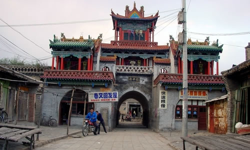 高家堡古城:唐屬豐州地,舊稱飛鴉川、彌川。城池始建于明正統(tǒng)四年(1439),原隸屬佳州,清末劃歸神木。該城位于神木縣城西南海50公里的禿尾河?xùn)|岸,西北距明長城約5公里,原為夯筑土城,萬歷三十六年(1608)用磚包砌,清乾隆十五年(1750)、三十三年(1768)兩度重修,后多次修葺。該城平面呈長方形、東南墻均長311米,南北墻均431米,殘高6.5—9.1米,基寬7.52米。城墻上部建有1米高的女墻,間有垛口、嘹望洞。北城頭修有三官樓,東南角建有魁星樓,F(xiàn)除魁性樓、女墻、垛口、嘹望洞被壞外,其余的均保存完好。另東、南、西墻各辟一卷門,并筑有甕城,現(xiàn)城門的敵樓、嘹望臺和南門已破壞。城內(nèi)原有的中興樓(1988年被縣人民政府公布為重點(diǎn)文物保護(hù)單位)、城隍廟、財神廟、五道廟、祖師廟、西門寺、貞節(jié)牌坊等古建筑,現(xiàn)僅存中興樓和財神廟,城內(nèi)街道以中興樓為軸心,向東西輻射為東西街,向陽北南北輻射為南街和北巷。明、清到民國初,南街最為繁華,至今大部分鋪面保存完好,東、西、南街各通有巷道。居民建筑群為典型的北方構(gòu)筑風(fēng)格。既有四合院,如北巷的李家大院;又有前庭大院,如東街的盧家大院、西街的韓家大院;還有樓院,如十字巷的李家樓院,同心巷的劉家樓院等。高家堡古城是神木縣乃至整個陜北較為完整的一座城堡,且有獨(dú)具特色的保護(hù)價值,神木縣人民政府已擬定將該城列為重點(diǎn)文物保護(hù)單位。
