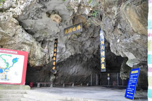佛爺洞位于李白故里——四川省綿陽江油市城西北十四公里處,是神密的川西北最大的喀斯特溶洞。此處上接匡山(又名戴天山);下連李白讀書臺;東臨觀霧、團嶺;西依瑩華、乾元,它是通往九寨風(fēng)景區(qū)的必經(jīng)之地。洞四周山環(huán)水繞,古木蒼翠,風(fēng)光奇絕。民國二十三年,人們在通天清河邊發(fā)現(xiàn)了一蹲三米多高的石刻如來佛像,故此洞名曰佛爺洞。